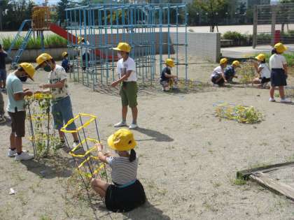 1年生 アサガオのツルを取りました