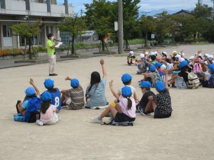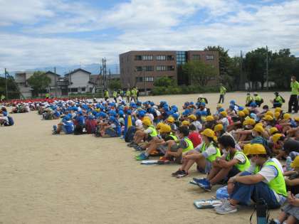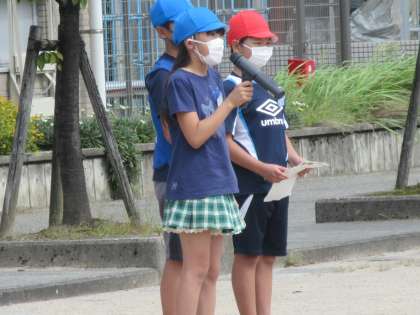 運営委員会の子供たちが、「縦割り光陽ウォークラリー」の終わりの式を進行しています。教頭先生の話をみんなで真剣に聞いて、一人一人目標が達成できたかを振り返っています。地域の方々やPTAの方々に見守っていただいたお陰で、子供たちが安全に活動することができました。縦割り班のみんなで歩き、友達との絆が深まりました。そしてさらには、光陽校区への愛着が一層高まったことでしょう。この活動にご協力いただいた方々、ありがとうございました。