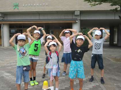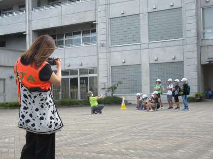 にこさわ広場では、班でまとまって写真撮影をしました。楽しい思い出の一枚になりましたね。PTAの方もありがとうございます。
