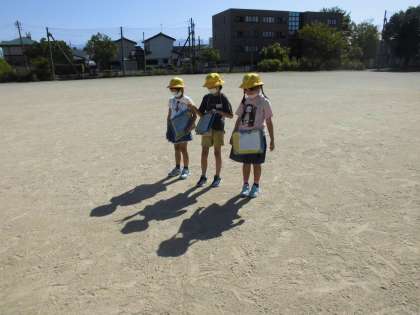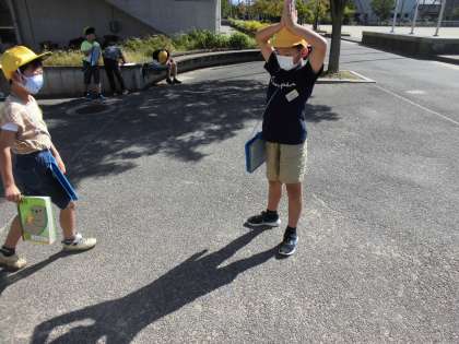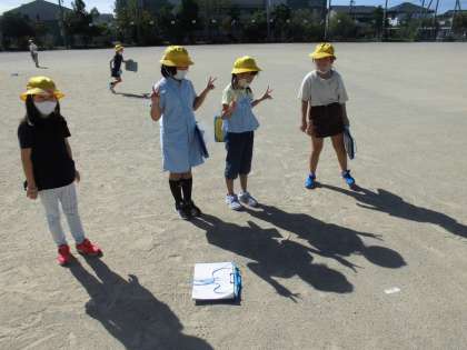 3年生の理科では、かげについての勉強をしています。普段、何気なく見ているかげについて、勉強を進めています。今日は天気がよかったので、外に出て、「ちいちゃんのかげおくり」にも出てくる「かげおくり」をしました。