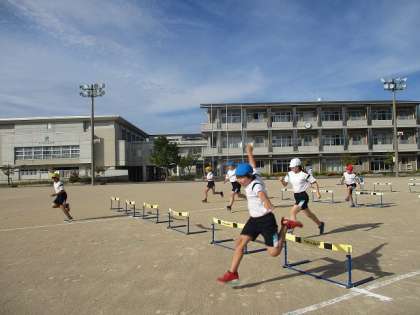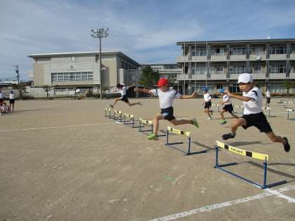 学年で、ハードル走の1回目のタイムを計りました。1回目の計測でしたが、上手にハードルを跳び越えていました。