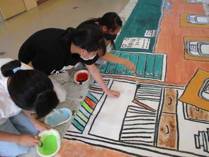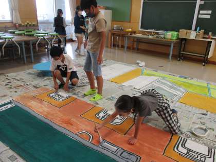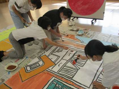 劇をより素敵なものにするために、小道具を作っています。また、ひな壇に付ける背景の色塗りもしました。練習できる日も、残りわずかとなりました。子供たちの手で創り上げている劇、まだまだパワーアップできそうです!
