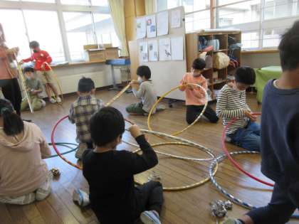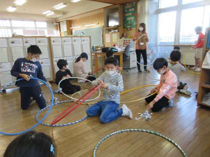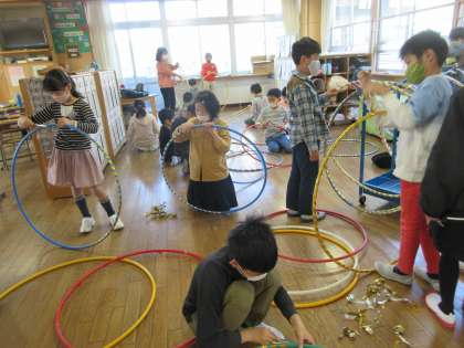 朝、4年生のオープンスペースでは、子供たちがフラフープのカラーテープを外していました。「学習発表会を振り返りながら片付けているんだよね。」と先生が言うと、自然にうなずく子供たち。キラキラ輝いていたフラフープ。がんばったステージを思い出しながら、テープを外します。大丈夫ですよ。みんなの輝きは、きっと客席のお家の方の脳裏に、そしてみんなの心の中にずっと残っているからね。