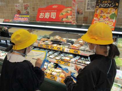 「手前どりの旗がたっているよ!」「お総菜がバラ売りされていると、食べる分だけ買えるね。」「期限が近いものが、値引きされていてお買い得になっていたよ。」など、食品ロス削減につながる取り組みをたくさん発見した子供たちでした。