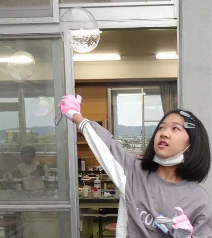 10/25(月)今日のクラブでも、割れにくいシャボン玉に挑戦しました。