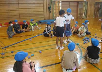 運動・安全委員会企画の玉入れ大会がありました。お手玉を入れた数がそのまま色団の得点になるため、どの子供たちも真剣に取り組んでいました。