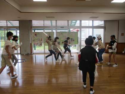 家来たちは大将を守りながら他の軍を攻め、大将たちは作戦を立てて協力したり裏切ったりしていました。戦国時代を生き抜く大変さ、賢く作戦を立てることの難しさを感じた子供たちでした。