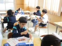 アルファベットの小文字の学習をしました。ALTのタミーカ先生と一緒に発音の練習をしたり、教科書の絵の中からアルファベットを探すゲームをしたりしました。