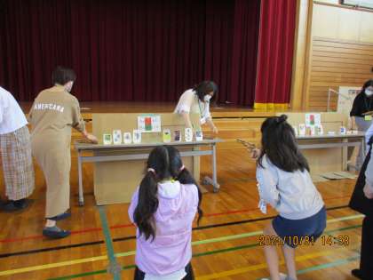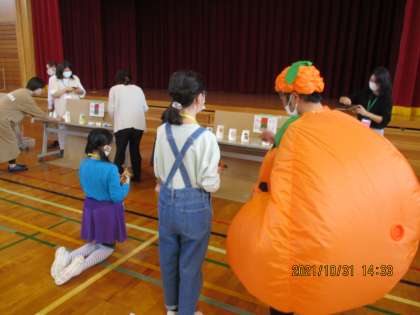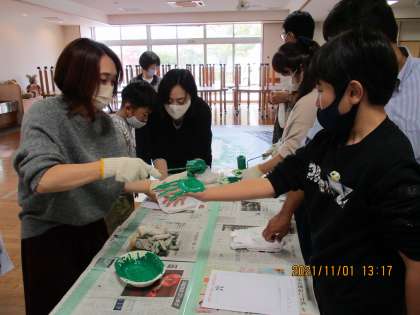 日曜日、おたのしみ会がありました。クイズやゲームなどに参加し、色々な景品をもらっていました。手形アートにも参加しました。
