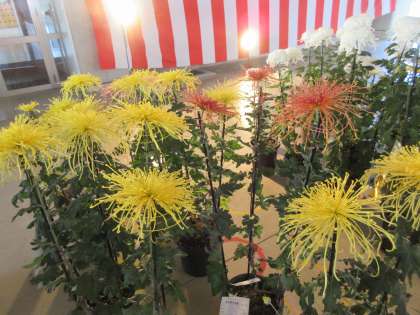 11月3日、4日と「西田地方光陽菊花展」がありました。会場は、西田地方小学校、光陽小学校と隔年で行われ、今年は、光陽小学校のピロティーが会場でした。丹精込めて育てられた菊花は、堂々と咲き誇っていました。紅白幕にもよく映え、ピロティーが華やいだ空間になっていました。