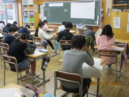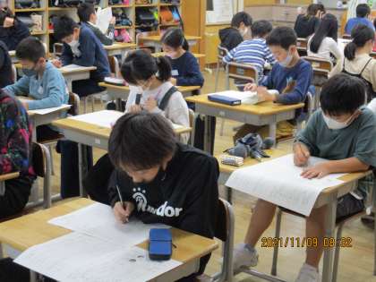 今週は後期学力調査を行います。1日1教科で、1日目は国語でした。みんな時間いっぱい真剣に取り組んでいました。明日は算数です。頑張りましょう!