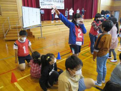 久し振りに、体育館で児童集会を行いました。密を避けるため、赤団・白団は体育館で、青団・黄団は教室からZoomで参加しました。久し振りにみんなで集まってジェスチャーゲームを行い、それぞれの場所で笑顔が広がりました。集会委員会のみなさん、準備・進行ありがとうございました!