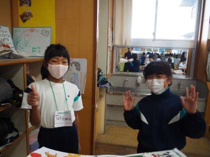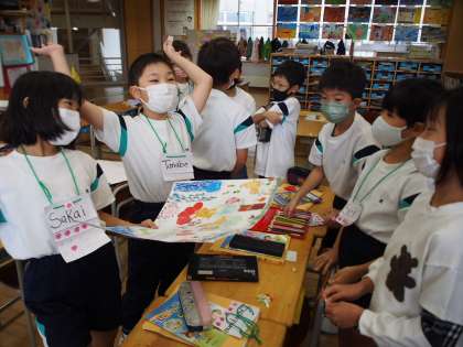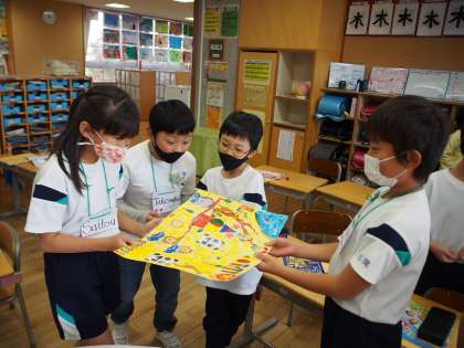 友達に○○カードを渡しました。これまで友達に喜んでもらえるか考え、何度も話し合いながら取り組みました。もらった友達は、笑顔で「ワオ!」とリアクションをとることができたました。