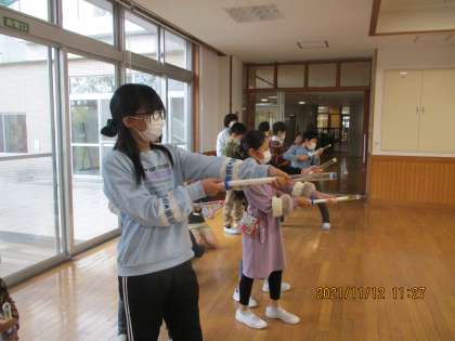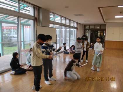 理科「とじこめた空気と水」の学習で、空気鉄砲を使って、玉の飛び方の実験しました。色々試しながら、疑問を解決していく様子が見られました。