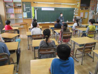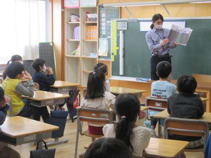お話の最後に、読み聞かせボランティアの方に、自分からお話を聞きに行く2年生の姿も見られました。とても素敵ですね。