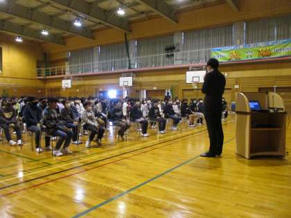 警察署の方に来ていただき、「ネット上のトラブルに遭わないために 加害者にならないために」という演題で講演していただきました。
