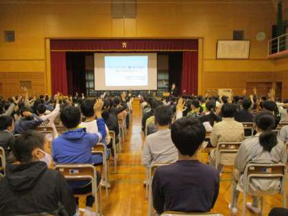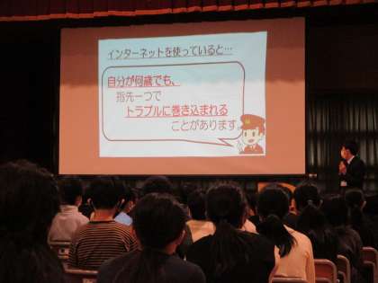 子供たちにとっては身近な話で、とても興味をもって聞いていました。また、実際の事例を聞き、改めてネットの怖さを感じたようです。「自分が何歳になっても、指先一つでトラブルに巻き込まれることがある」という言葉を心に留め、被害者にも、加害者にもならないように、気を付けて生活してほしいと思います。