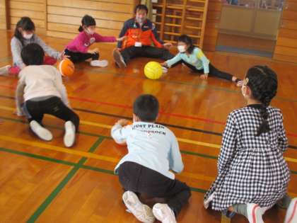 2組は、体育館でボール遊びをしました。滝本先生にも楽しいボール遊びを教えてもらいながら、みんなで仲良く遊びました。