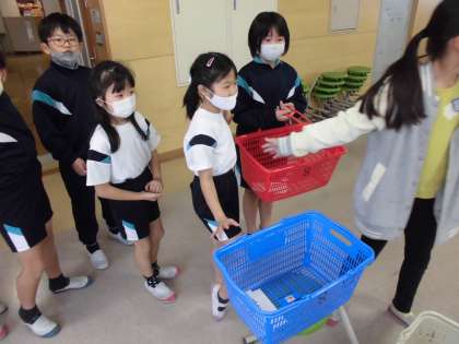 今日のさんさんタイムに5年生が総合で学習している「食品ロス」についていろいろな体験をさせてもらいながら学びました。「手前取り」をする買い物体験やすごろく、クイズや読み聞かせなど、「食品ロス」について楽しく学ぶことができました。