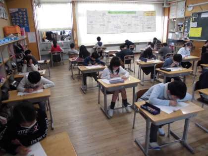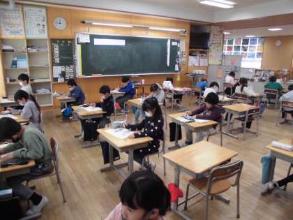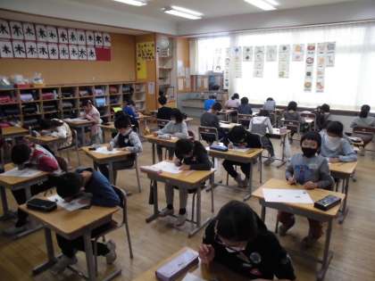 今日から3年生は学習のたしかめテストが始まりました。今日は国語をしました。文章問題を何回も読みながら解答する姿や、漢字の書き間違えがないか見直しをする姿が見られました。