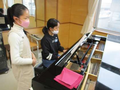 音楽科の学習では、鍵盤ハーモニカやリコーダー、打楽器などを使って演奏の練習をしています。分からないところは互いに声を掛け合って練習するなど、素敵な姿が見られました。