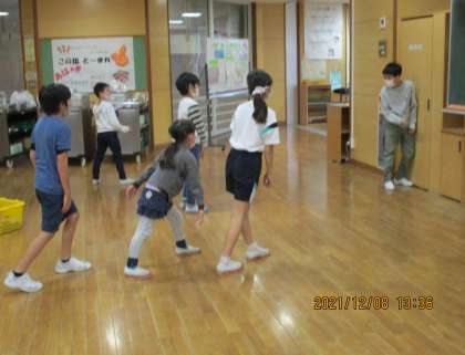 本日、のびのびタイムに6年生が企画する最後の縦割り遊びがありました。1年生の子供たちは、上学年の話をしっかり聞いたり、ルールを教わったりしていました。上学年は、下学年が楽しめているか、細かく気を配っていました。