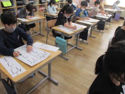 書初めの練習が始まりました。今年は「竹うま」と書きます。字の大きさ、太さ、濃さ、バランスを考えながら、集中して練習に取り組んでいます。頑張れ2年生!