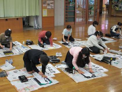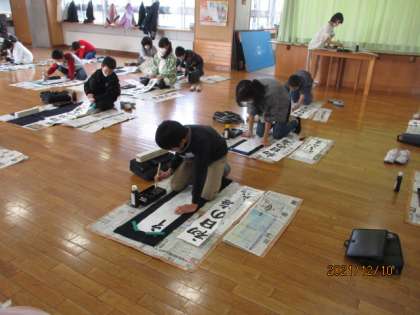 3学期の書き初め大会に向けて、練習を始めました。今年の5年生の文字は「初日の海」です。ゆっくりとていねいに筆を動かし、真剣な眼差しで取り組む子供たちでした。