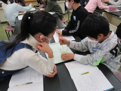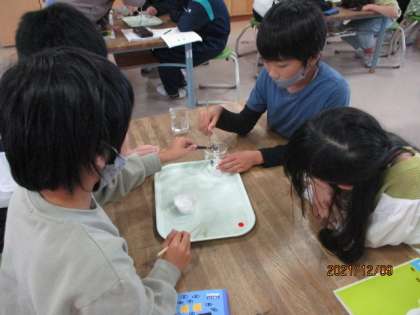 理科の学習では、もののとけ方について実験をしながら学習しています。毎時間楽しく実験を行っています。