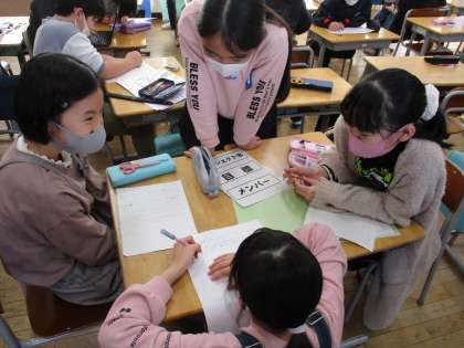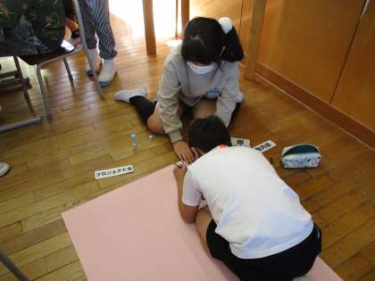 来週の報告会に向けて、これまでの活動の様子や活動を通して気付いたこと、学んだことを模造紙にまとめています。