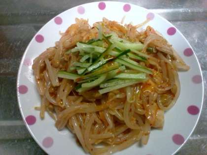・お好みの納豆(1パック)・もやし(1袋)・ごま油(大さじ1)・塩(小さじ1/4)・おろしにんにく(お好みで少々)・きゅうり(5分の1ぽん)・ラー油(適量)・キムチ(適量)
