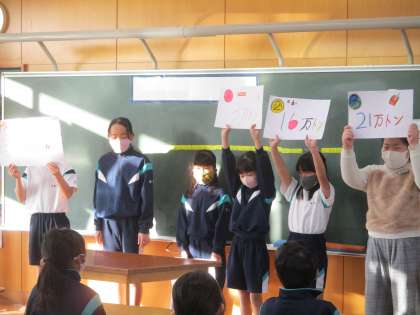 総合的な学習の時間「未来へつなごう わたしたちの環境」で学習してきたことを3年生に伝える学習をしました。クラスそれぞれ違うまとめ方で、伝えることができました。真剣に聞いてくれてよかったですね。