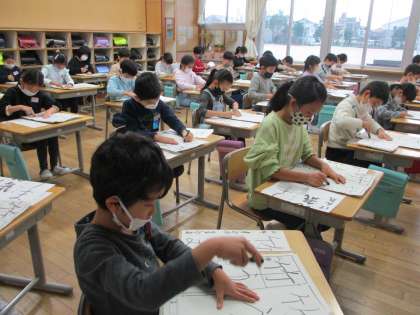 2時間目に書初め大会がありました。