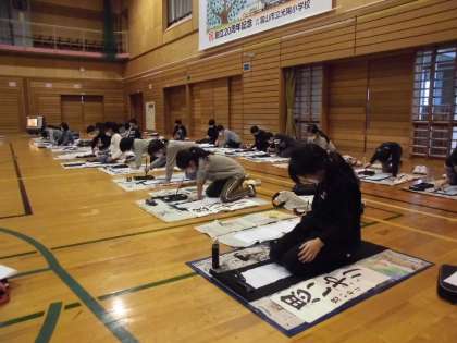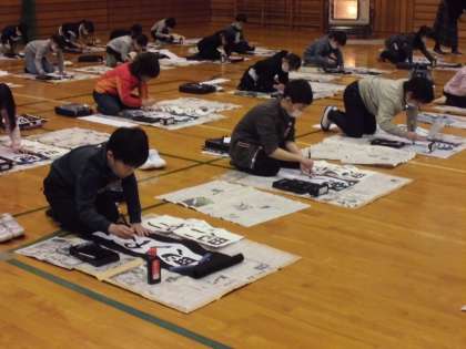 今日は書き初め大会が行われました。全員が集中し、緊張感のある雰囲気の中で「思いやり」と筆を進めていました。冬休み中に練習した成果を発揮して、満足のいく書き初めになりました。