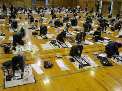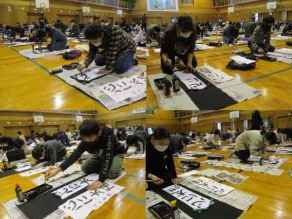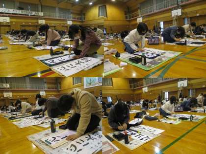 始業式の後、体育館で書初め大会を行いました。今年は「心に太陽」という字を書きました。子供たちの大きくて、力強い文字を見ていると、身体の奥底から力がみなぎってくるような感じがしました。