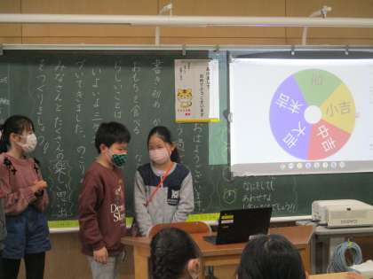 大吉を当てて大喜びの子供や大吉以外で残念そうにしている子供等様々でした。どれが出てもみんなで温かく拍手をしている様子が微笑ましかったです。