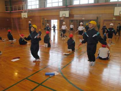 体育科の時間に、なわとびの練習をしています。前跳びから二重跳びまで、レベルアップを目指し、友達に数えてもらいながら、様々な技に挑戦しいています。目指すは後ろ二重跳び!頑張れ、2年生!