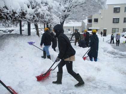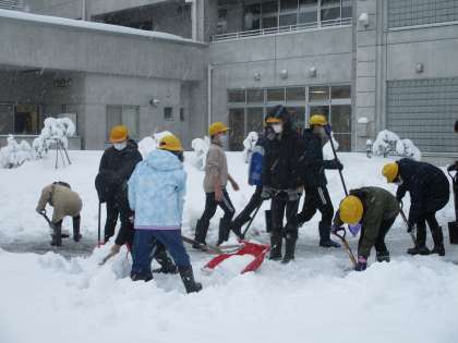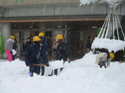 たくさん雪が降ったので、朝、登校した人からにこさわ広場の雪かきをしています。全員でやると、すぐに広場がきれいになります!みんなの力を合わせると大きな力になることを実感できますね。そして、朝からいい運動になります!