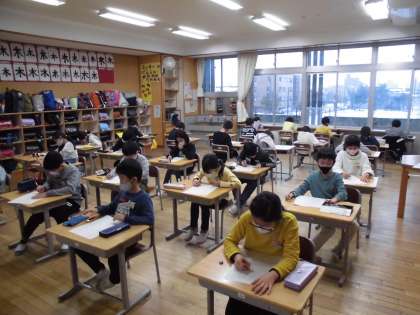 今日は計算チャレンジテストがありました。冬休み中から何度も練習を重ねてきた子供たち。練習の成果を発揮しようと、最後の最後まで見直しをしたり、解き直したりする姿が見られました。明日は漢字チャレンジです。自分の力を出せるように、がんばりましょう。