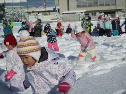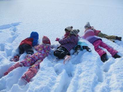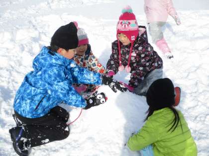 本日、1時間目から外に出て、雪遊びをしました。天気も良く、サラサラな雪で、雪遊び日和でした。人間スタンプやかけっこをした後、自由遊びをしました。かまくらを作ったり、雪の上に寝っ転がったりして楽しそうに遊んでいました。