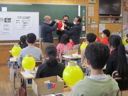 富山県技能振興センターより「ものづくりマイスター」の方に来ていただき、ランプシェード作りをしました。