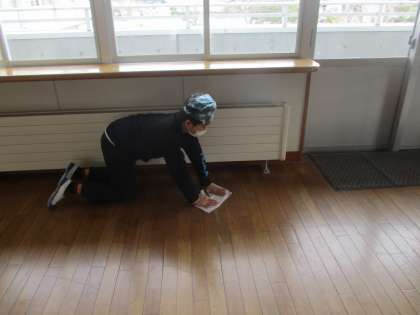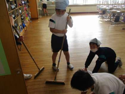 子供たちは、「黙働」を守って真剣に掃除をしています。