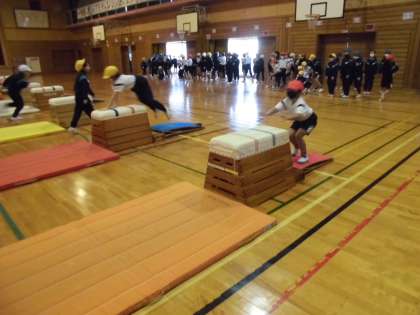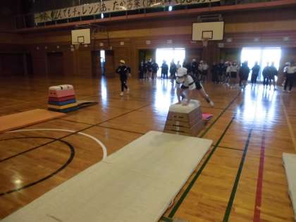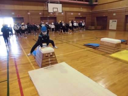 体育の授業では跳び箱が始まりました。今日は、久しぶりの跳び箱だったということで、カエル跳びをして体を動かす練習をしたり、跳び箱の上に乗ってから、手で少しずつ前に進んだりする練習をしました。