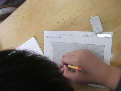 理科「水のすがたと温度」の学習では、水を凍らせる実験を行いました。子供たちは、実験結果をグラフに表し、そこから気付いたことを発見しようと真剣に取り組んでいました!