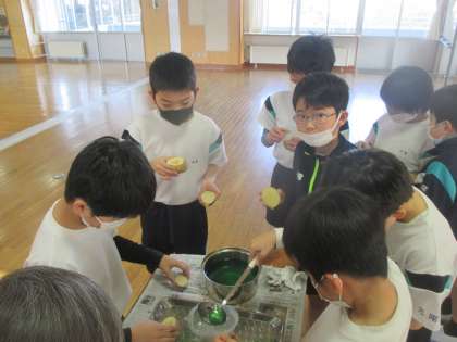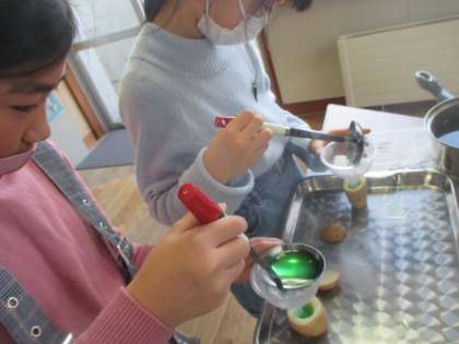 4年生では、高岡銅器の模擬鋳造体験を行いました。子供たちは、じゃがいもを型としながら、鋳造の仕組みを楽しみながら学習していました!