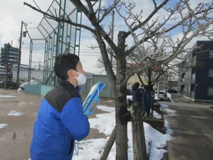 サクラの木の観察をしました。子供たちは、「秋よりも芽が増えている。たくさん芽ができている。」と話しながら丁寧にスケッチをしていました。