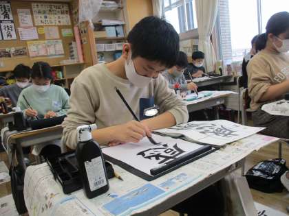 今の子供たちの気持ちにぴったりの言葉です。4年間の習字のまとめとして、点画のつながりや、部分の組み立てに気を付けて丁寧に書くことができました。