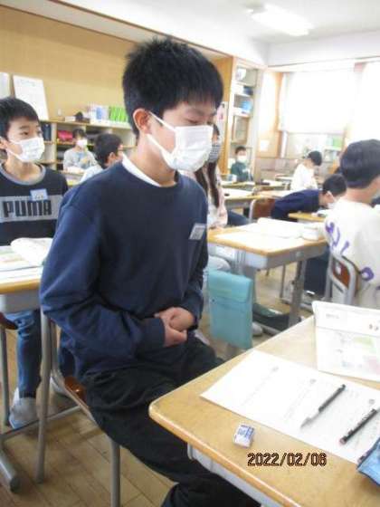5年1組では、保健「心の健康」の学習を行いました。今回の学習課題は「不安や悩みへの対処法を知ろう」です。まずクロームブックを使って、今までに感じたことがある不安や悩みについて無記名でアンケートをとり、グラフを使って「不安や悩みはだれにでもある」ということを確かめました。その後、不安や悩みを感じたとき、どんなふうに落ち着くかという話し合いでは、「静かな場所に行く」「好きなおかしを食べる」「ゲームに熱中して忘れる」等様々な方法が出ました。最後にリラックスの方法としてみんなで腹式呼吸を体験しました。