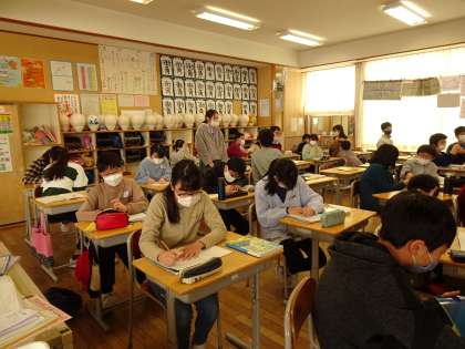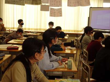6年1組では、国語「漢字を正しく使えるように」の学習を行いました。解答と回答のように、同じ読み方で違う意味の漢字について話題にすると、「集会委員会の『はじめの言葉』を担当した時、始め と 初め で迷った」「他にも○○や△△なんていう字もある」等の発言があり、興味関心をもちながら学習を進めました。ご家庭でも、クイズのように問題を出しあって楽しんでみてください。