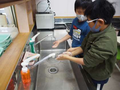 子どもたちは、実際に手を洗い直しました。「絶対に菌を残さないぞ」「コロナになってたまるか」と語り合う姿がありました。